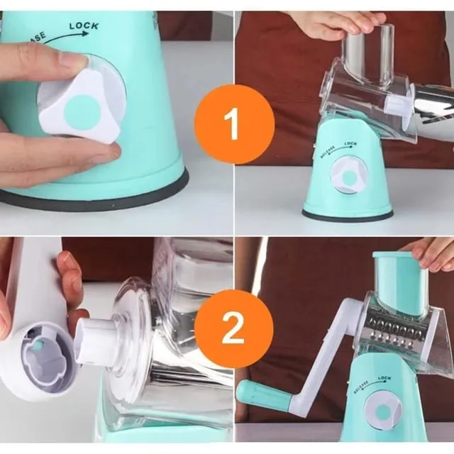 A Reasonably priced drum-type rotating vegetable shredder has powerful suction feet for stability on your table.This makes it efficient and easy to operate!