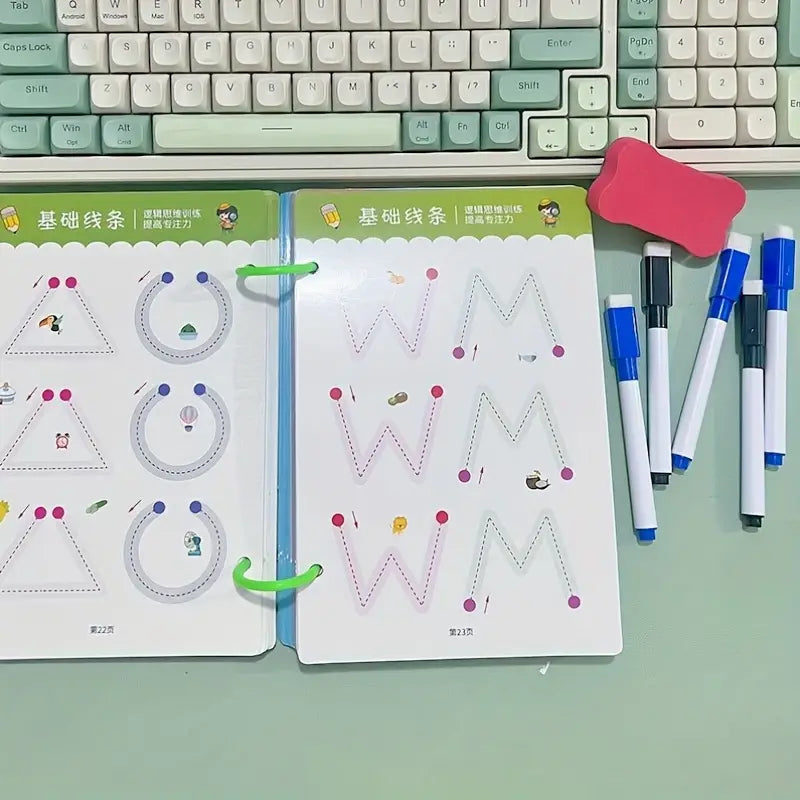 With reusable pages, erasable stickers, and 4 magic pens, your child can trace, draw, and repeat without wasting paper. The included chalk eraser makes cleanup a breeze, encouraging practice through repetition in a fun and engaging way. Great for at-home learning, travel, or classroom support.